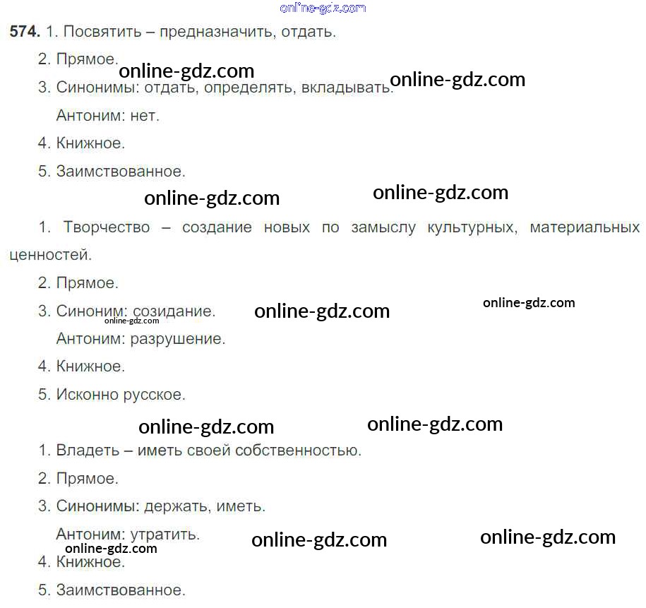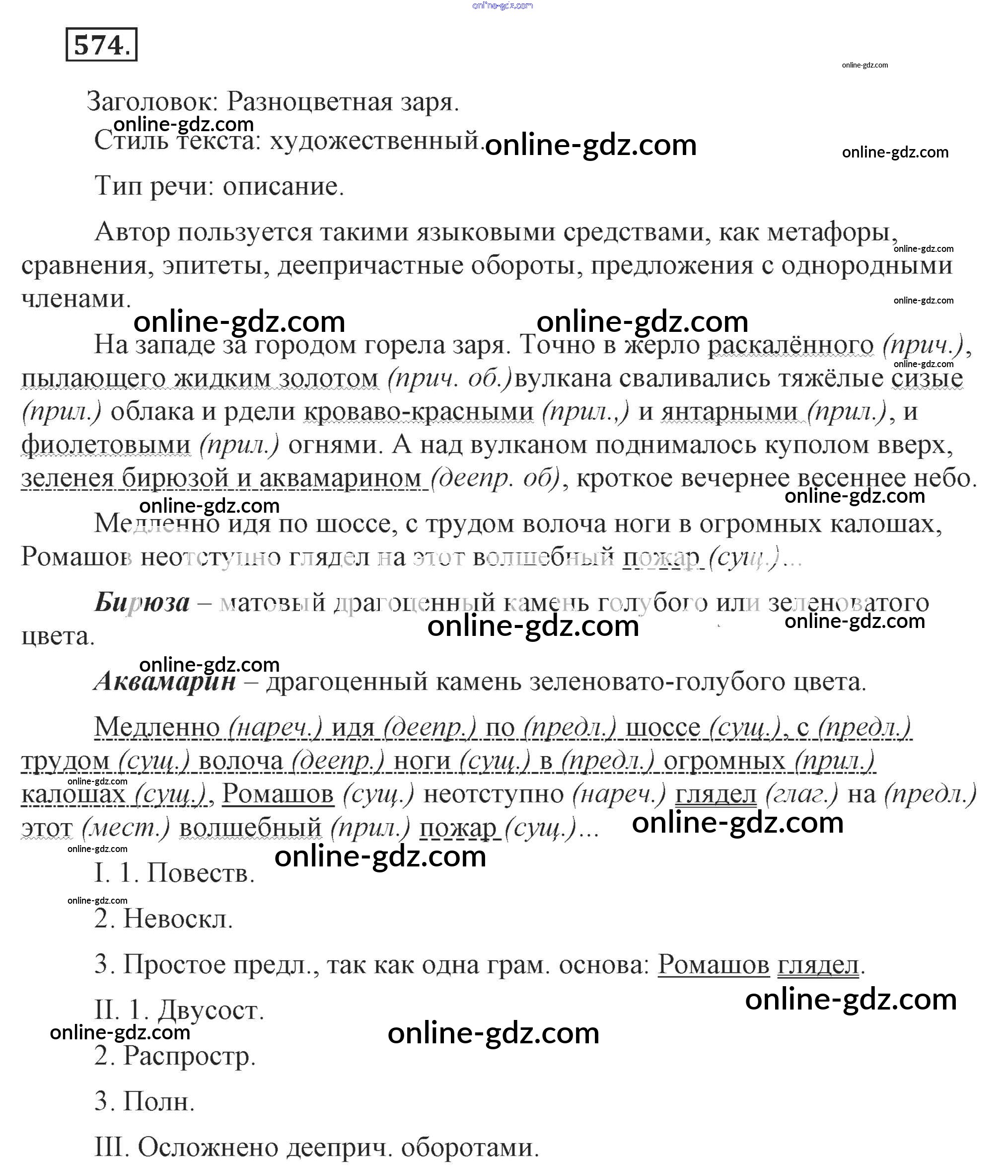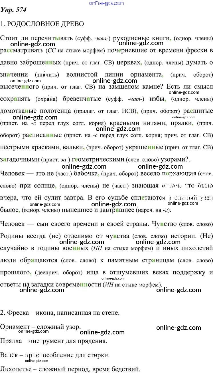 Готовые домашние задания по Русскому языку за 7 класс Учебник Разумовская, Львова УМК 2014 - Упражнения 574