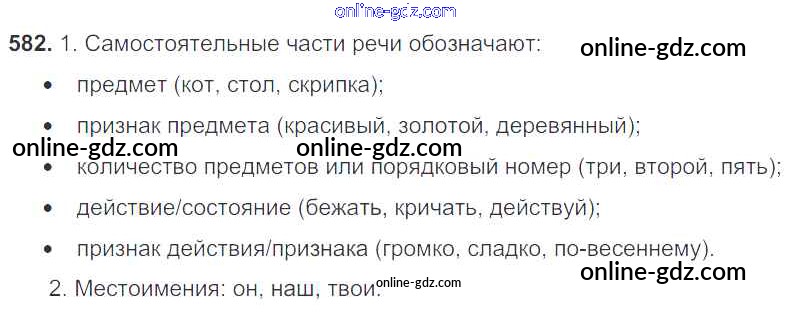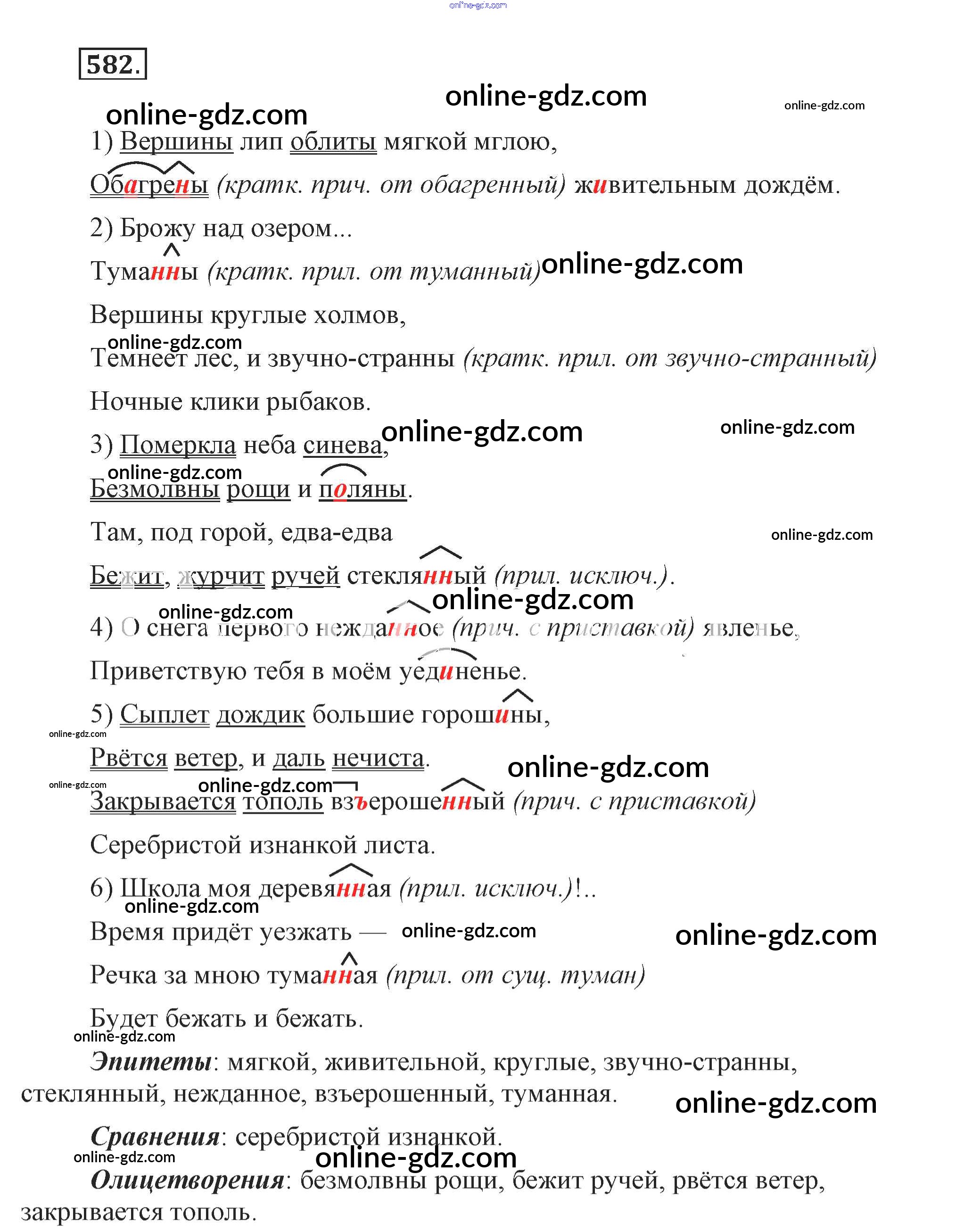 Готовые домашние задания по Русскому языку за 7 класс Учебник Разумовская, Львова УМК 2014 - Упражнения 582