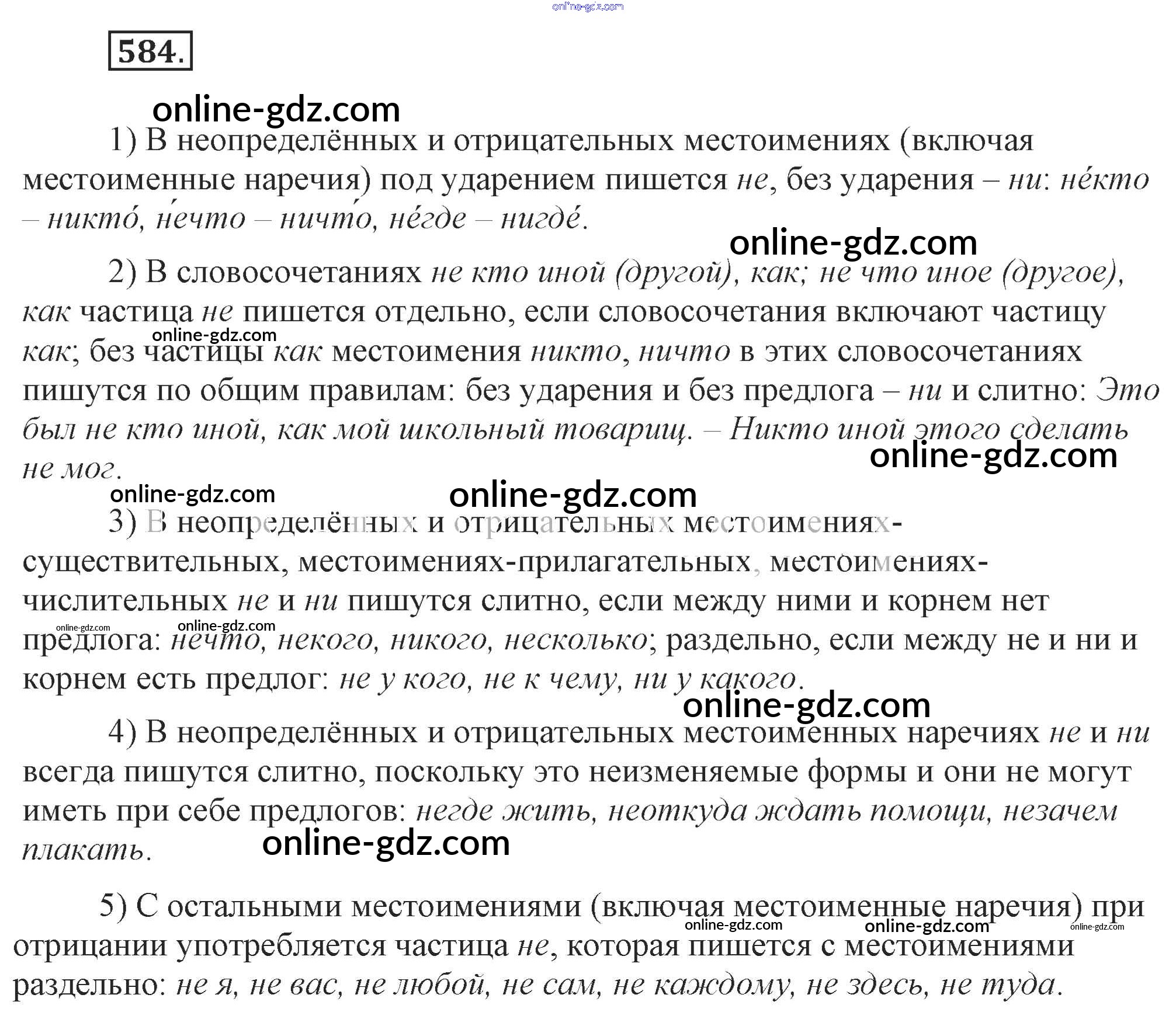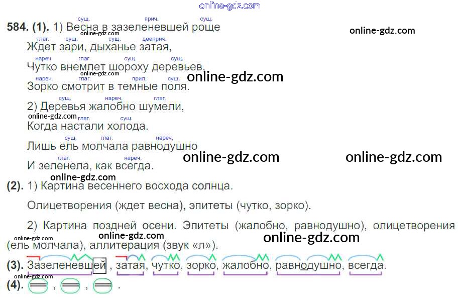 Готовые домашние задания по Русскому языку за 7 класс Учебник Разумовская, Львова УМК 2014 - Упражнения 584