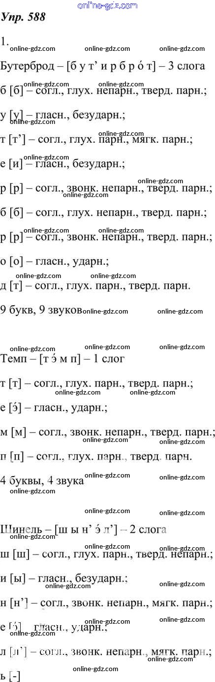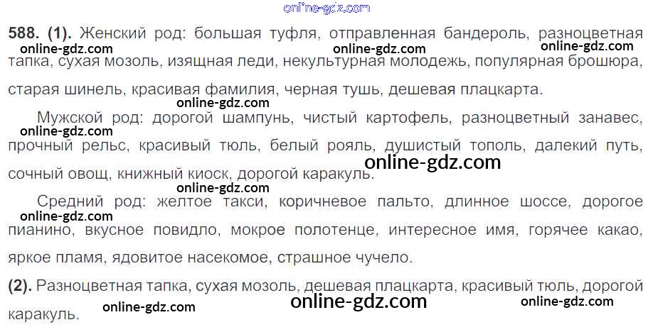 Готовые домашние задания по Русскому языку за 7 класс Учебник Разумовская, Львова УМК 2014 - Упражнения 588