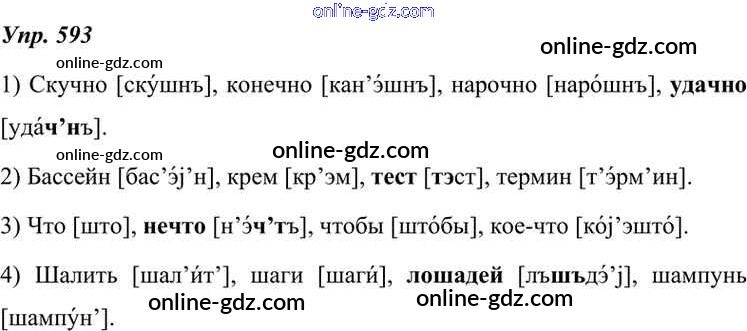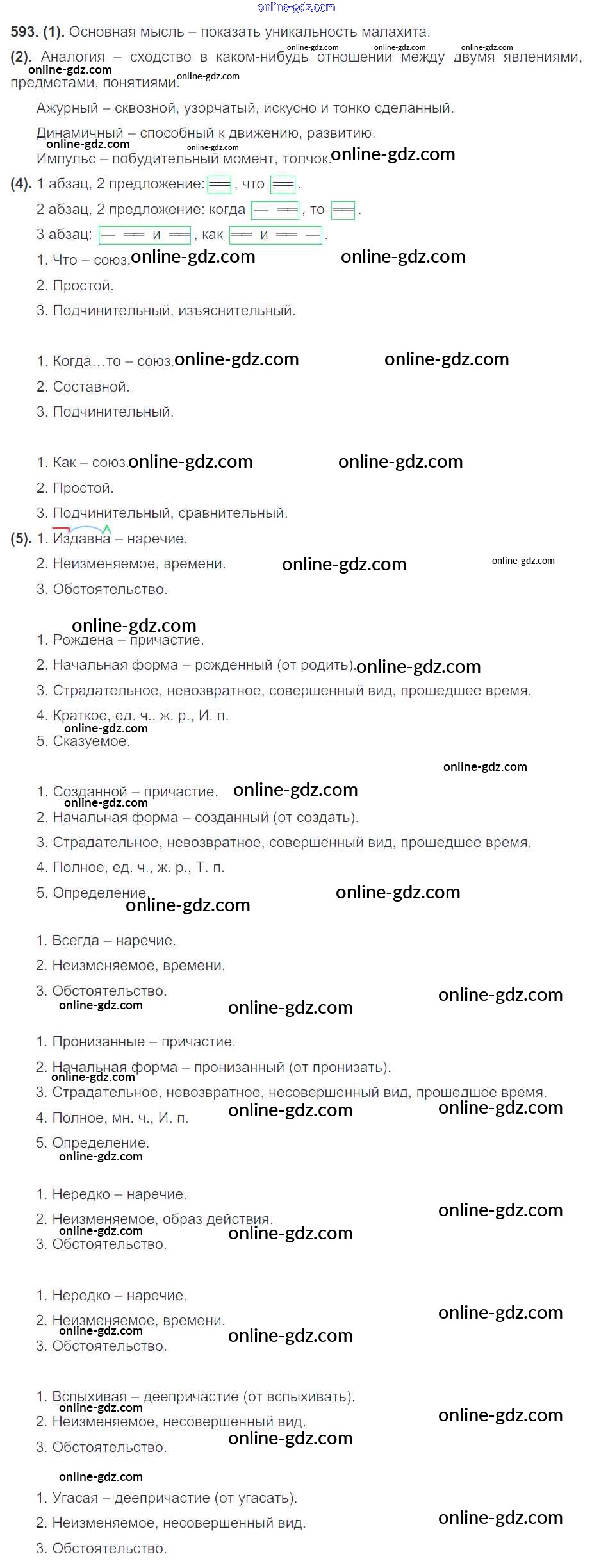 Готовые домашние задания по Русскому языку за 7 класс Учебник Разумовская, Львова УМК 2014 - Упражнения 593