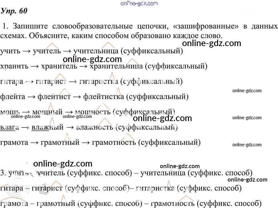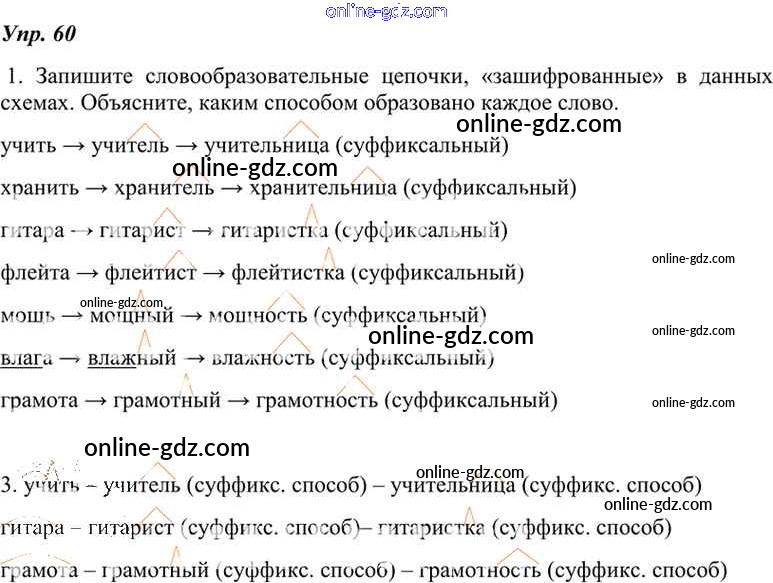 Готовые домашние задания по Русскому языку за 7 класс Учебник Разумовская, Львова УМК 2014 - Упражнения 60