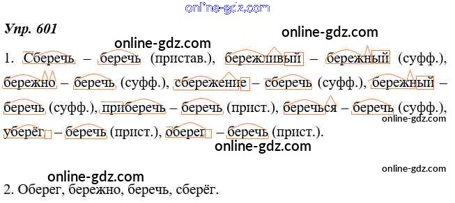 Готовые домашние задания по Русскому языку за 7 класс Учебник Разумовская, Львова УМК 2014 - Упражнения 601