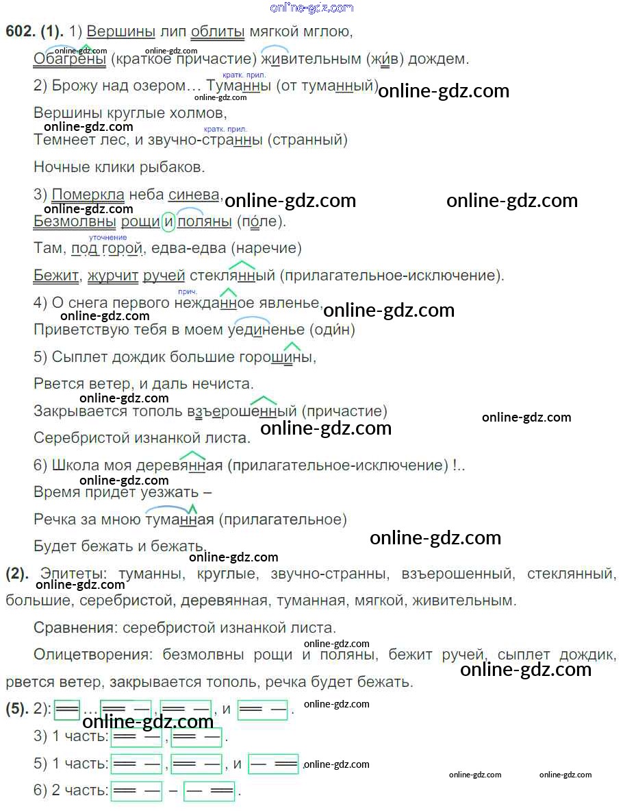 Готовые домашние задания по Русскому языку за 7 класс Учебник Разумовская, Львова УМК 2014 - Упражнения 602