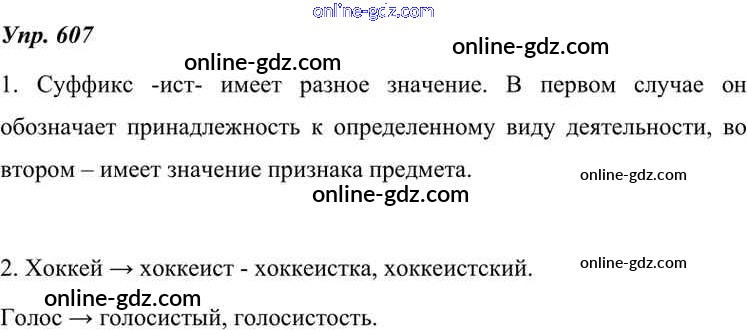 Готовые домашние задания по Русскому языку за 7 класс Учебник Разумовская, Львова УМК 2014 - Упражнения 607