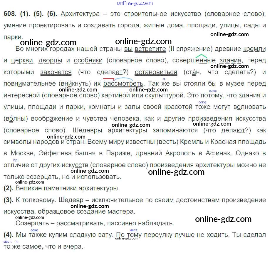 Готовые домашние задания по Русскому языку за 7 класс Учебник Разумовская, Львова УМК 2014 - Упражнения 608