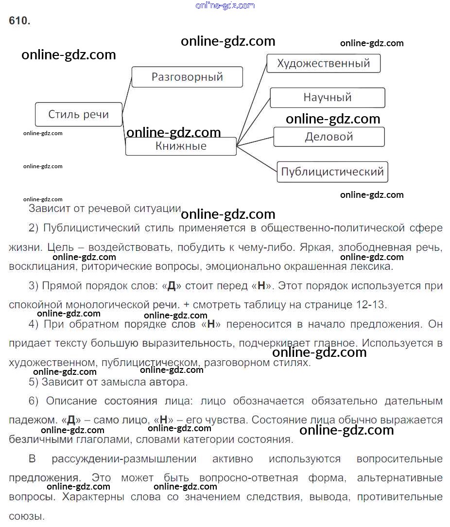 Готовые домашние задания по Русскому языку за 7 класс Учебник Разумовская, Львова УМК 2014 - Упражнения 610