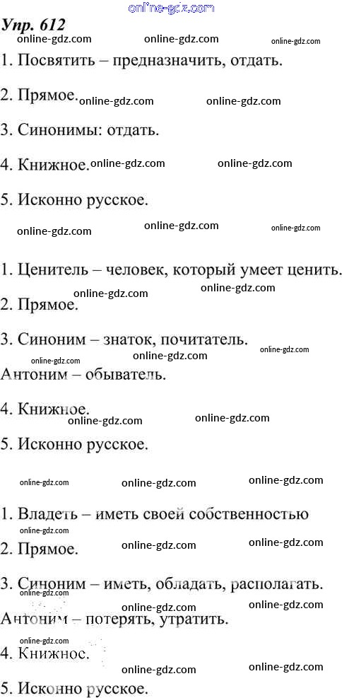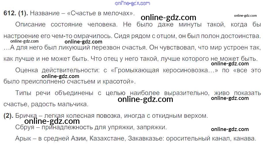 Готовые домашние задания по Русскому языку за 7 класс Учебник Разумовская, Львова УМК 2014 - Упражнения 612