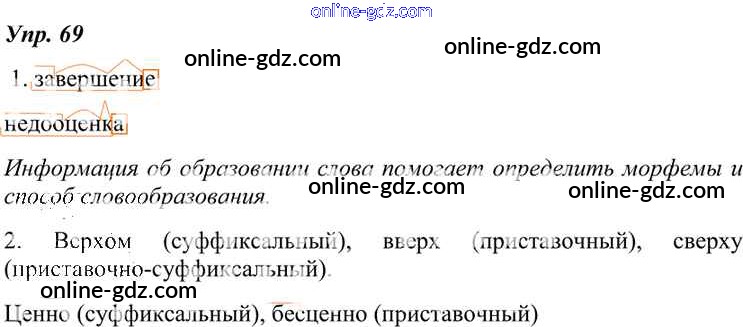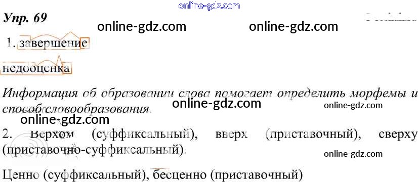Готовые домашние задания по Русскому языку за 7 класс Учебник Разумовская, Львова УМК 2014 - Упражнения 69