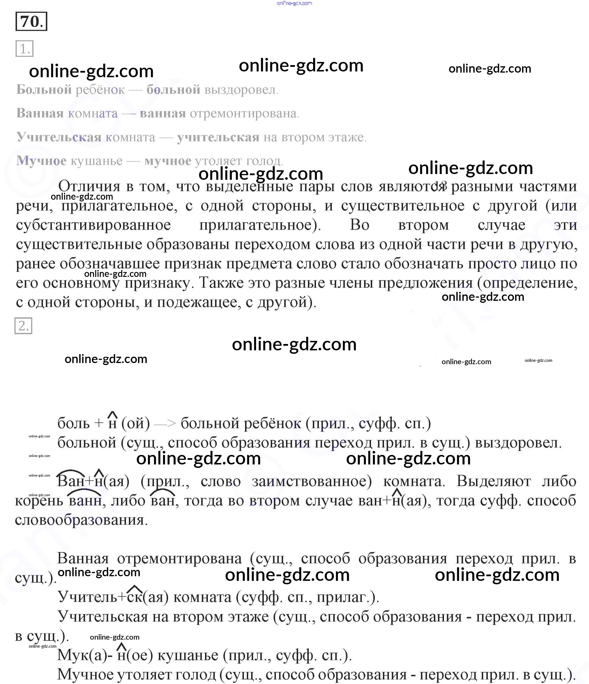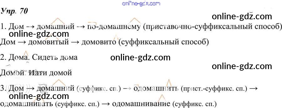 Готовые домашние задания по Русскому языку за 7 класс Учебник Разумовская, Львова УМК 2014 - Упражнения 70