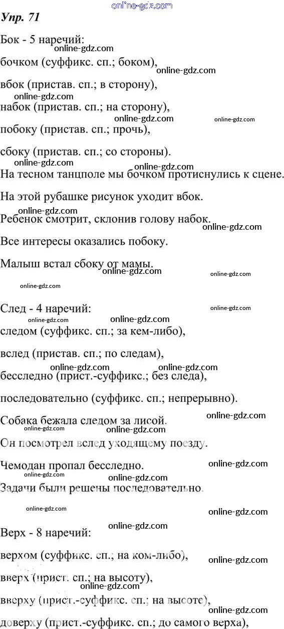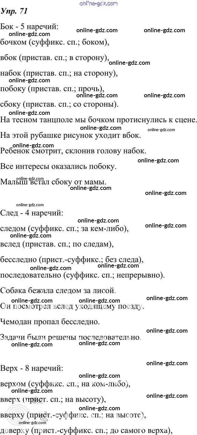 Готовые домашние задания по Русскому языку за 7 класс Учебник Разумовская, Львова УМК 2014 - Упражнения 71