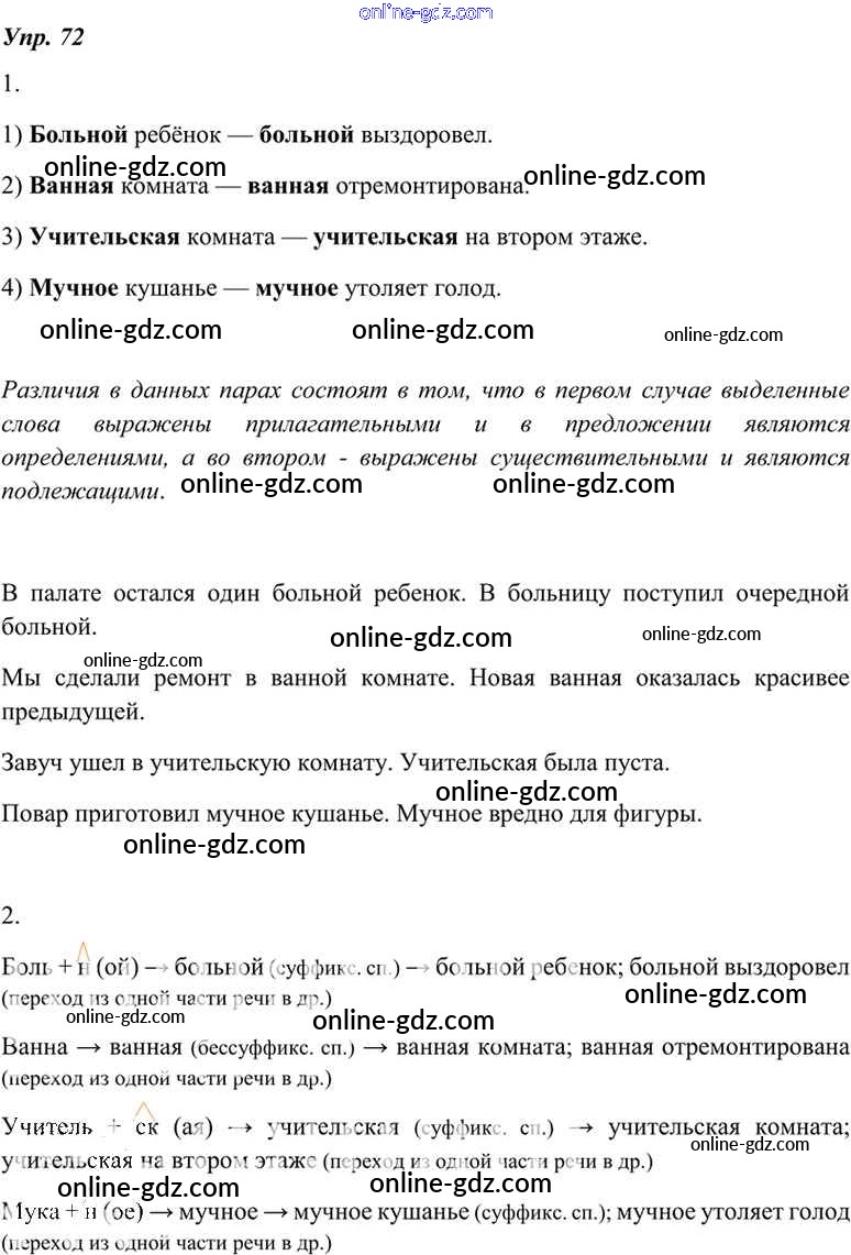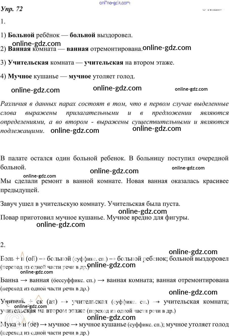 Готовые домашние задания по Русскому языку за 7 класс Учебник Разумовская, Львова УМК 2014 - Упражнения 72