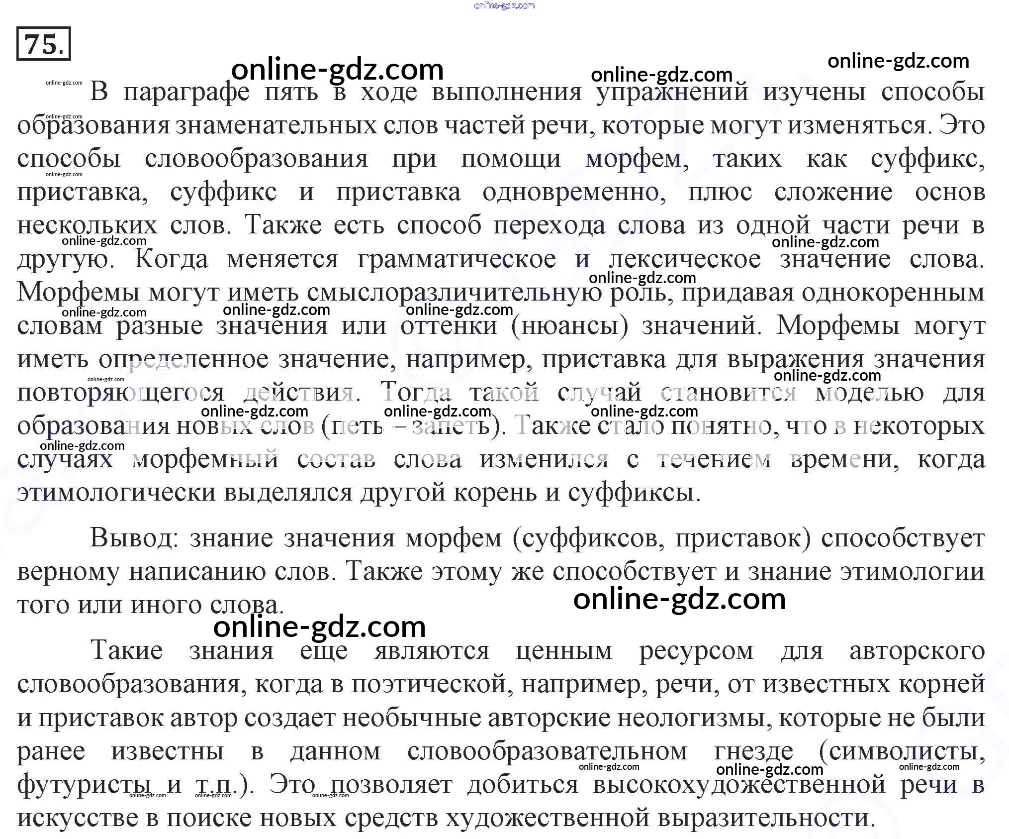 Готовые домашние задания по Русскому языку за 7 класс Учебник Разумовская, Львова УМК 2014 - Упражнения 75
