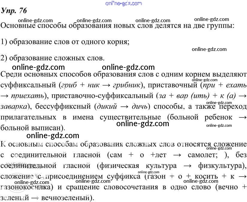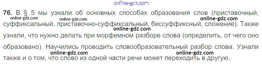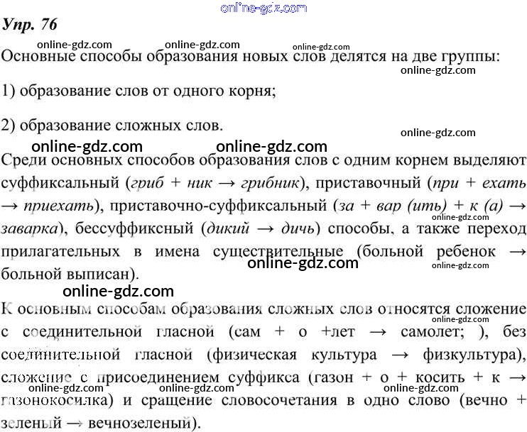 Готовые домашние задания по Русскому языку за 7 класс Учебник Разумовская, Львова УМК 2014 - Упражнения 76