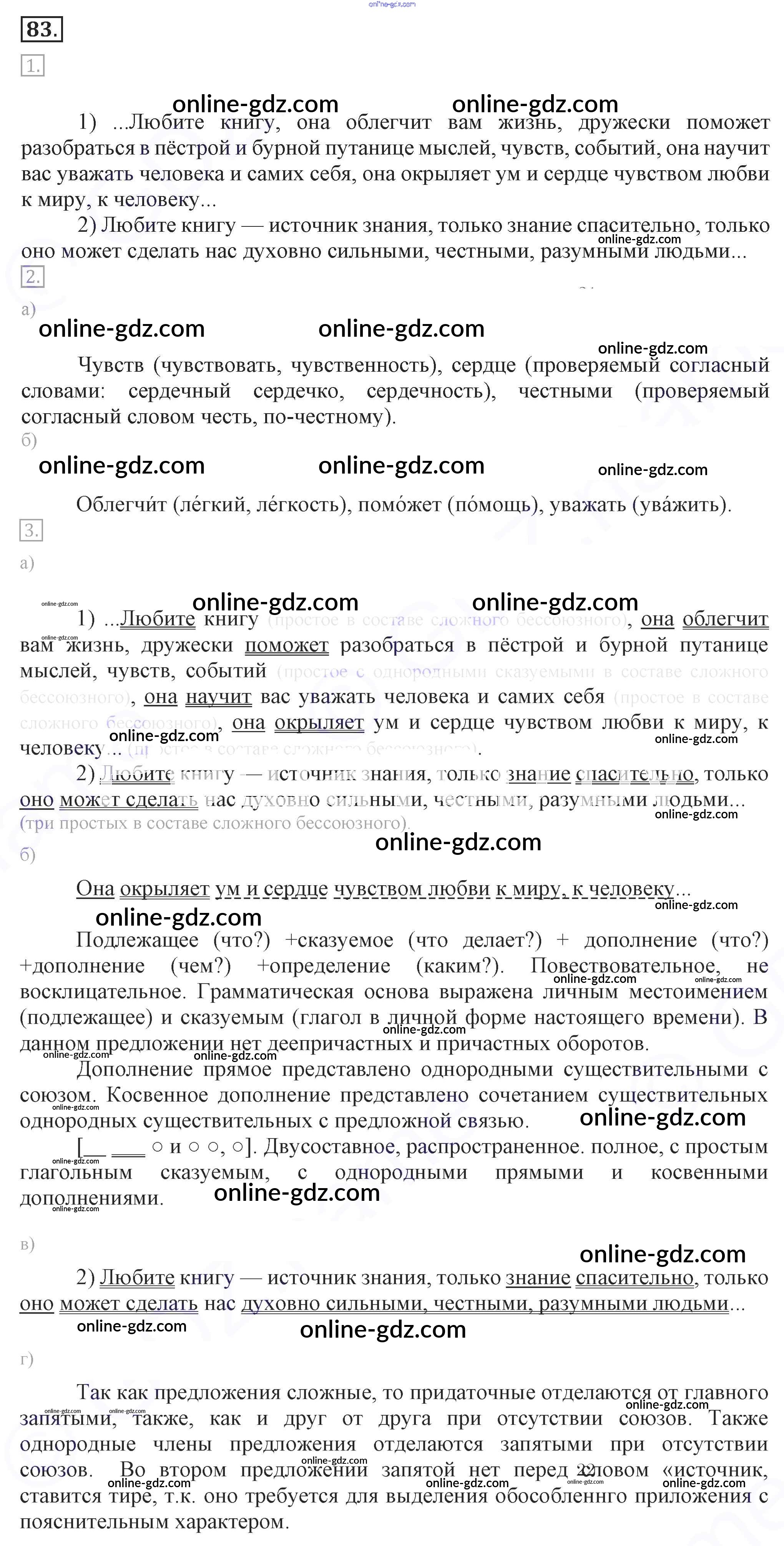 Готовые домашние задания по Русскому языку за 7 класс Учебник Разумовская, Львова УМК 2014 - Упражнения 83