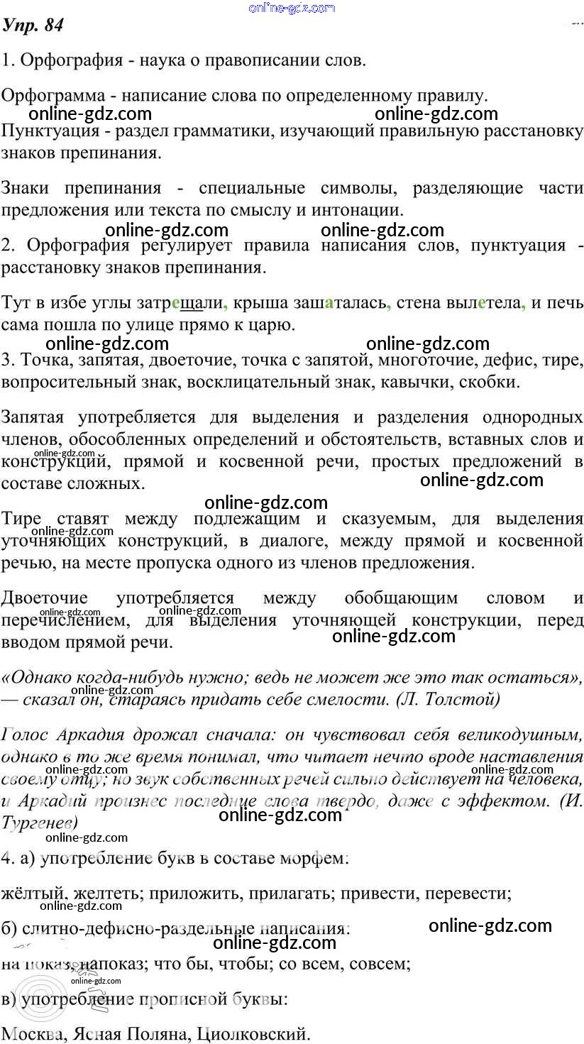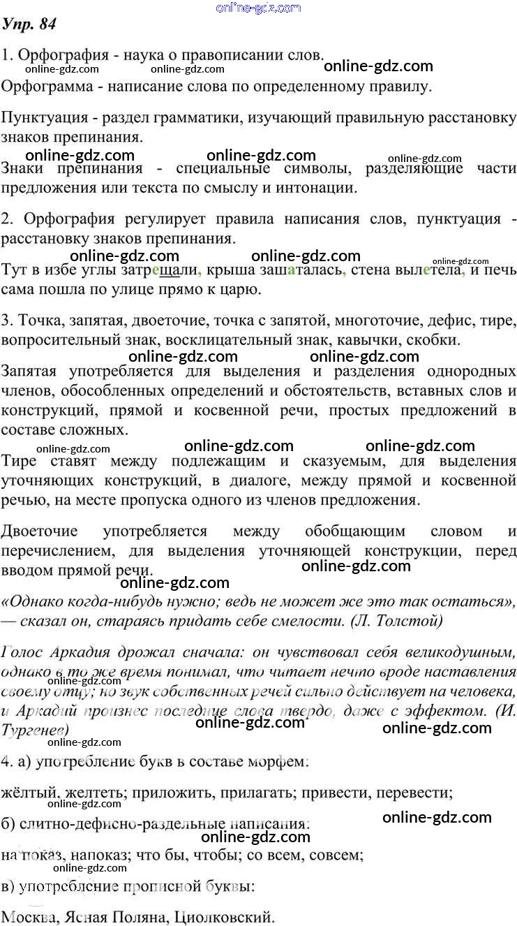 Готовые домашние задания по Русскому языку за 7 класс Учебник Разумовская, Львова УМК 2014 - Упражнения 84