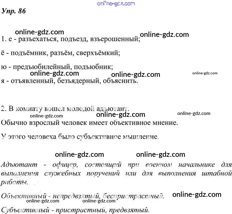Готовые домашние задания по Русскому языку за 7 класс Учебник Разумовская, Львова УМК 2014 - Упражнения 86