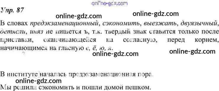 Готовые домашние задания по Русскому языку за 7 класс Учебник Разумовская, Львова УМК 2014 - Упражнения 87