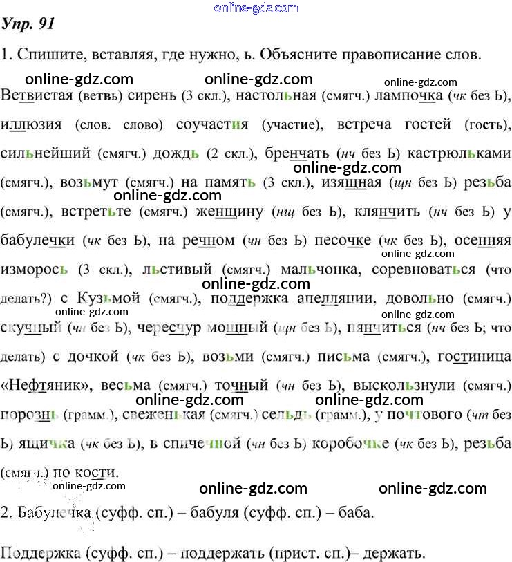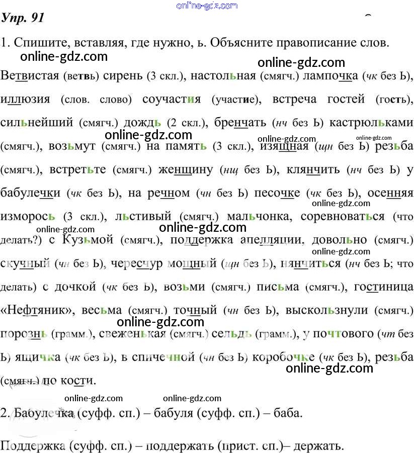 Готовые домашние задания по Русскому языку за 7 класс Учебник Разумовская, Львова УМК 2014 - Упражнения 91
