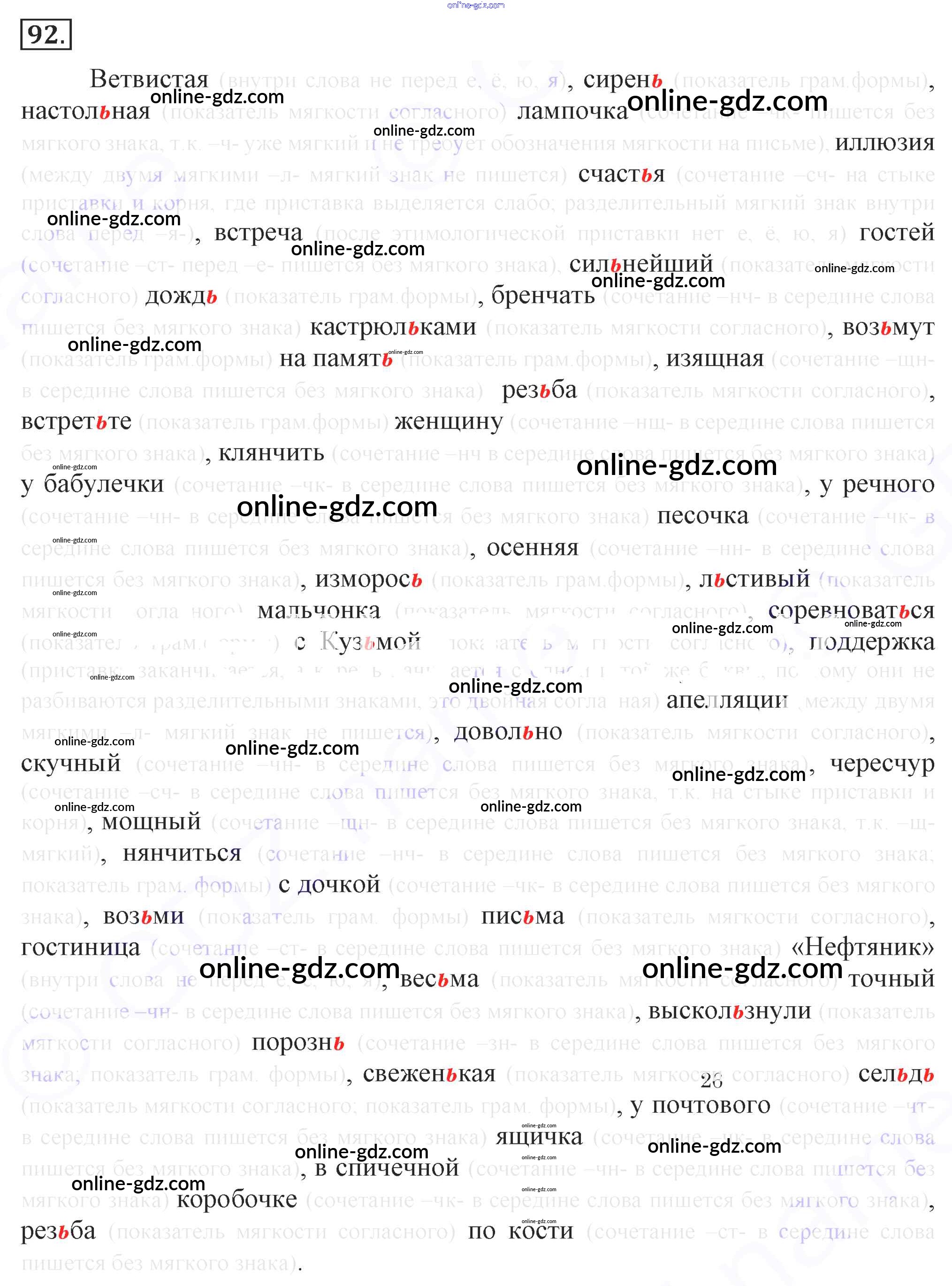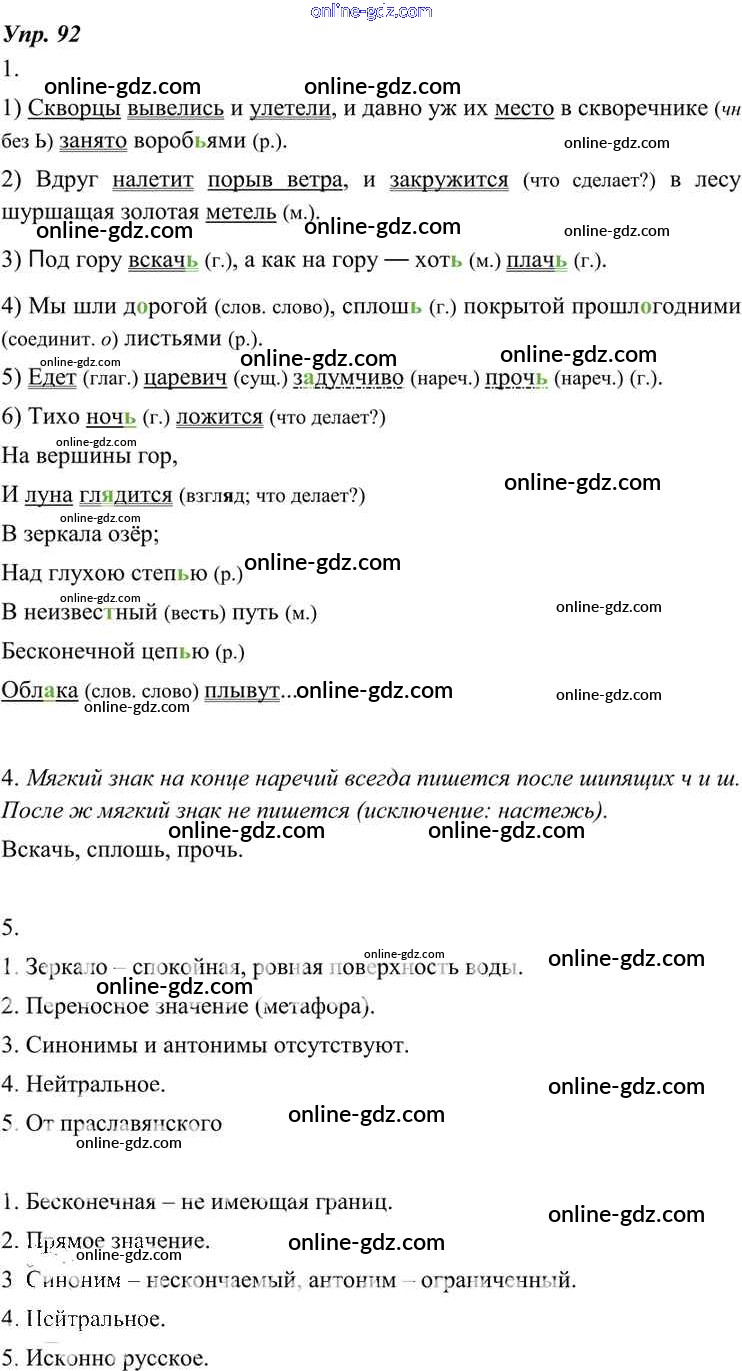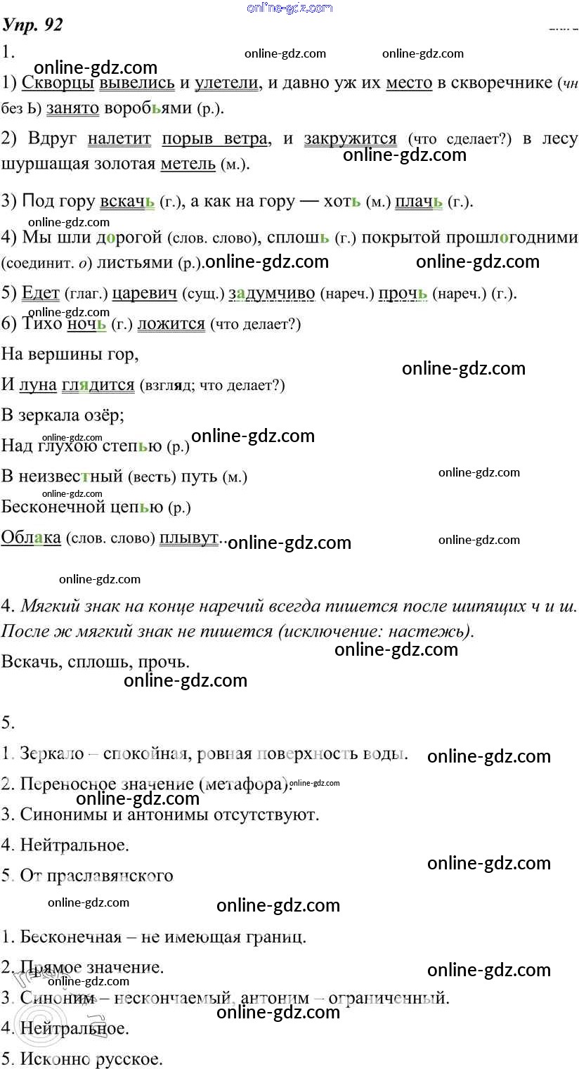 Готовые домашние задания по Русскому языку за 7 класс Учебник Разумовская, Львова УМК 2014 - Упражнения 92