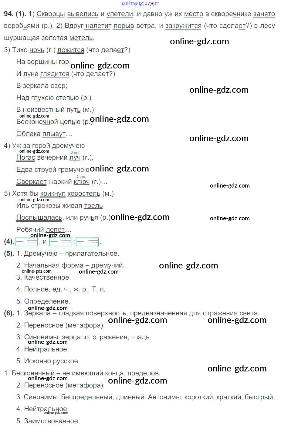 Готовые домашние задания по Русскому языку за 7 класс Учебник Разумовская, Львова УМК 2014 - Упражнения 94