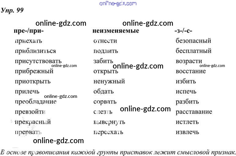Готовые домашние задания по Русскому языку за 7 класс Учебник Разумовская, Львова УМК 2014 - Упражнения 99