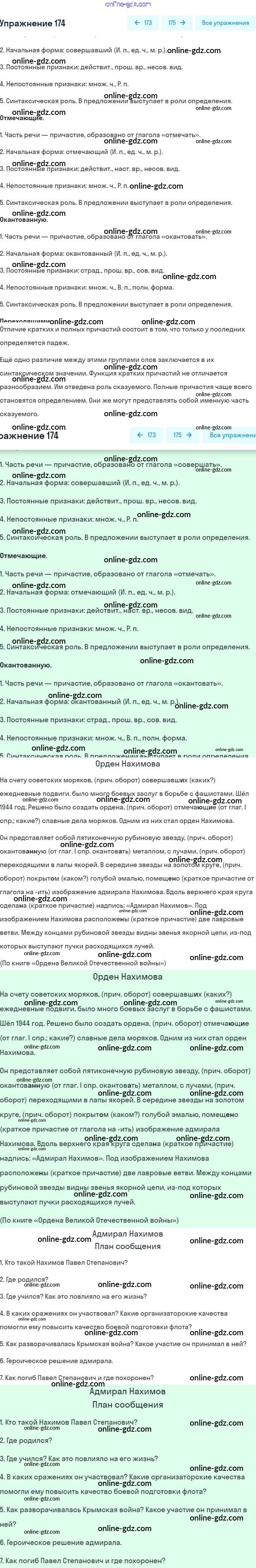 Готовые домашние задания по Русскому языку за 7 класс Учебник Рыбченкова, Александрова 2016 - Упражнения 174