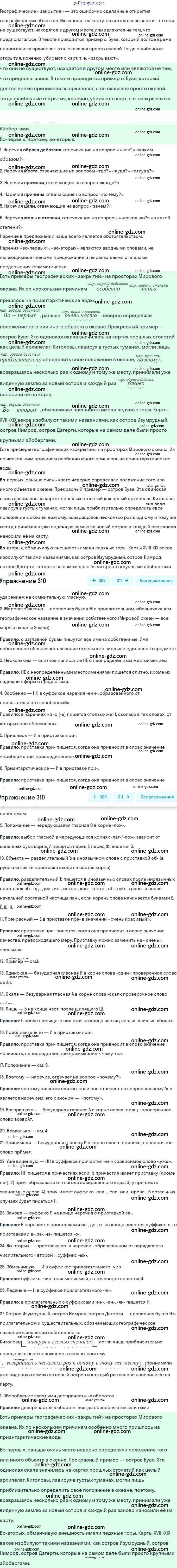Готовые домашние задания по Русскому языку за 7 класс Учебник Рыбченкова, Александрова 2016 - Упражнения 310