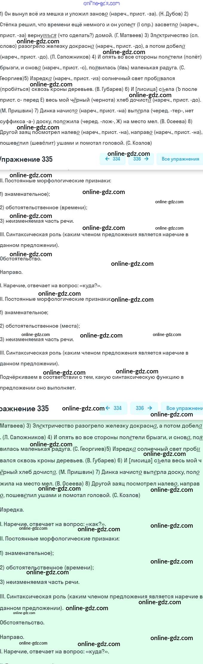 Готовые домашние задания по Русскому языку за 7 класс Учебник Рыбченкова, Александрова 2016 - Упражнения 335