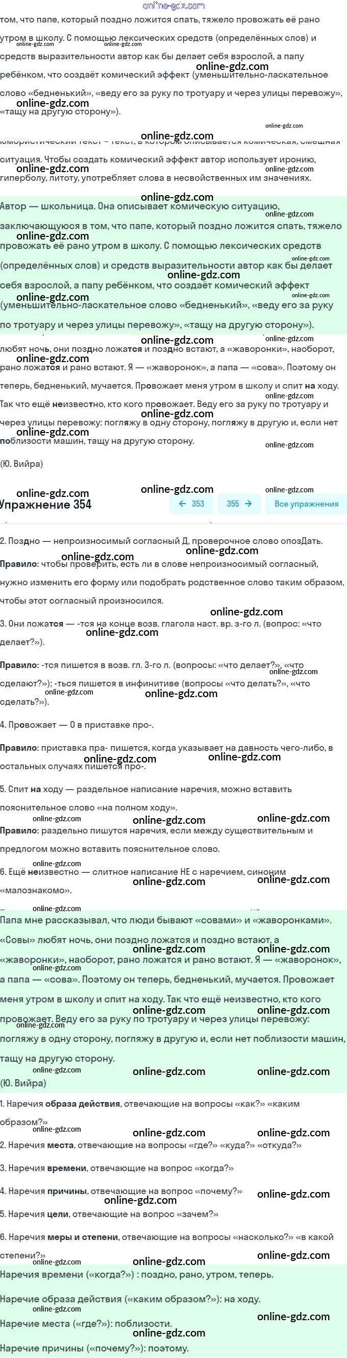 Готовые домашние задания по Русскому языку за 7 класс Учебник Рыбченкова, Александрова 2016 - Упражнения 354