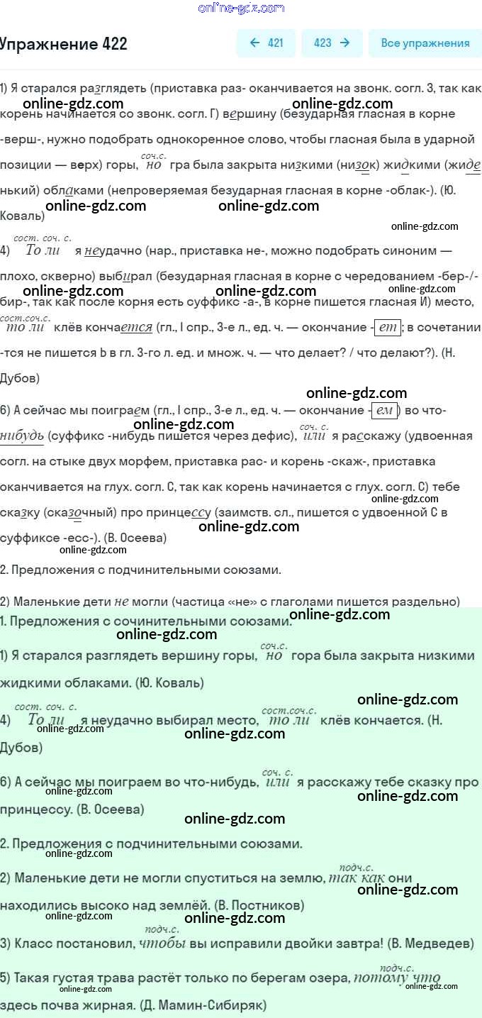 Готовые домашние задания по Русскому языку за 7 класс Учебник Рыбченкова, Александрова 2016 - Упражнения 422