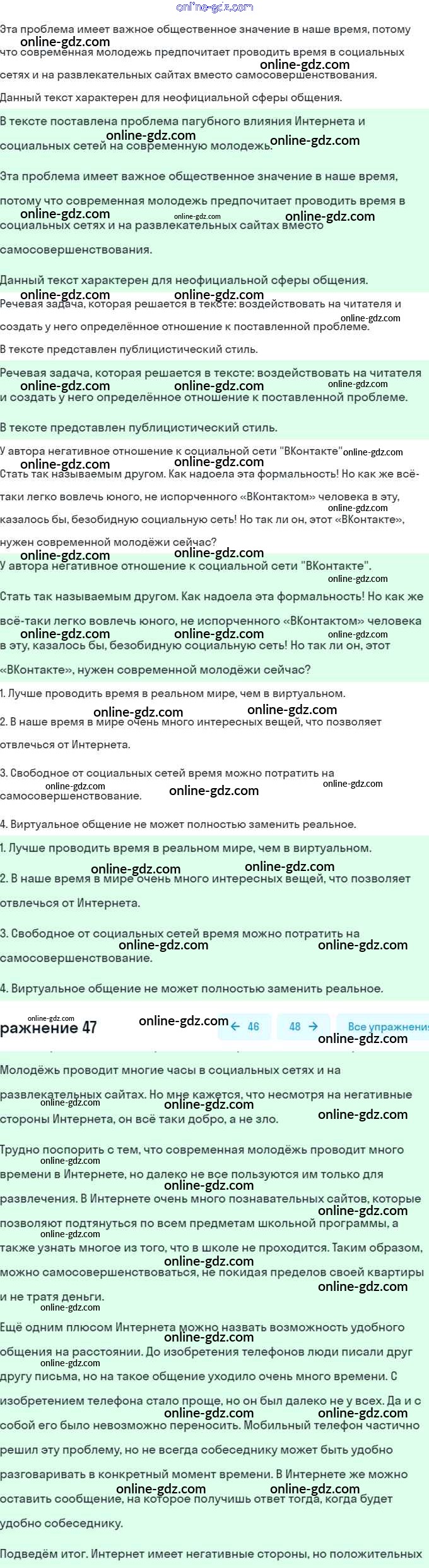 Готовые домашние задания по Русскому языку за 7 класс Учебник Рыбченкова, Александрова 2016 - Упражнения 47