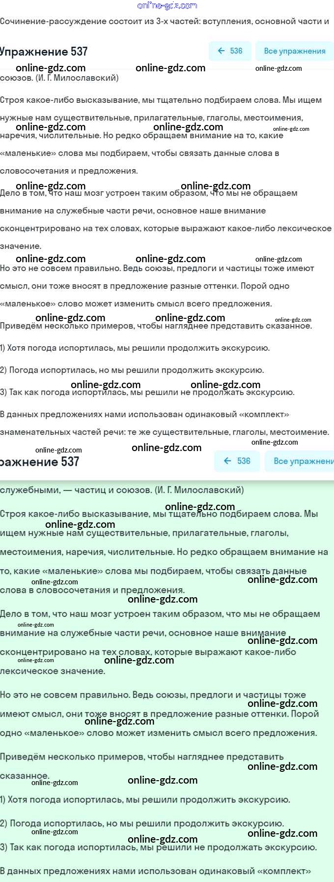 Готовые домашние задания по Русскому языку за 7 класс Учебник Рыбченкова, Александрова 2016 - Упражнения 537