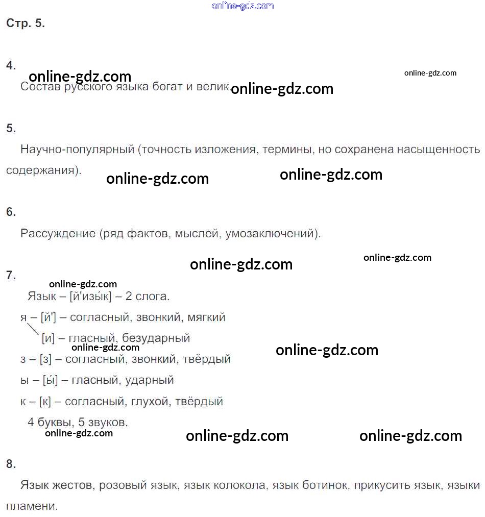 Готовые домашние задания по Русскому языку за 8 класс Комплексный анализ текста (Рабочая тетрадь) Малюшкин 2018 - Страницы 5