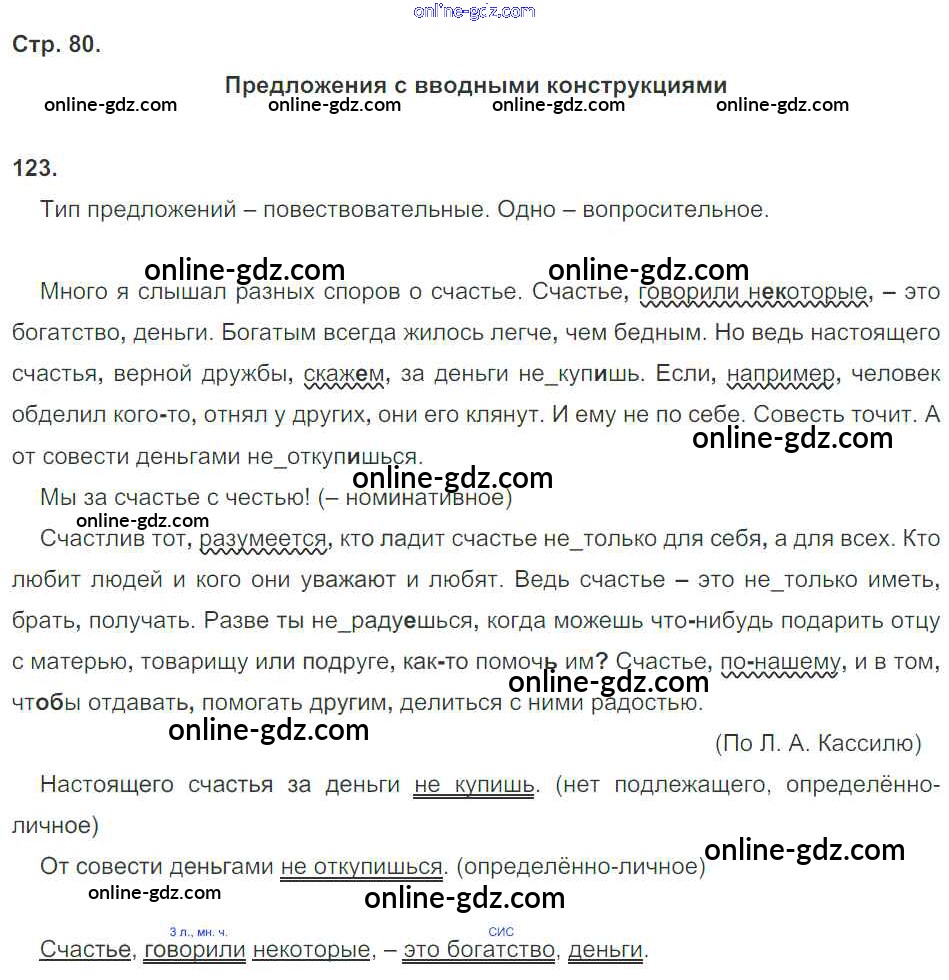 Готовые домашние задания по Русскому языку за 8 класс Рабочая тетрадь Кулаева УМК 2015 - Упражнения 123