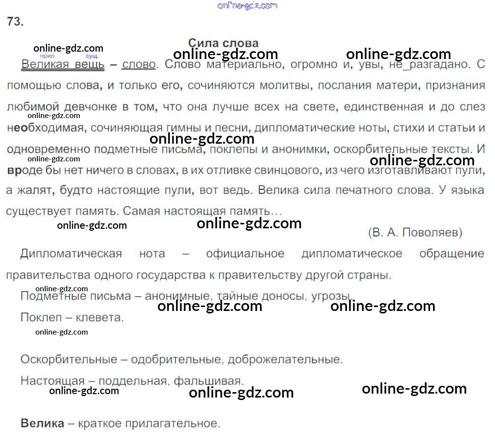 Готовые домашние задания по Русскому языку за 8 класс Рабочая тетрадь Кулаева УМК 2015 - Упражнения 73