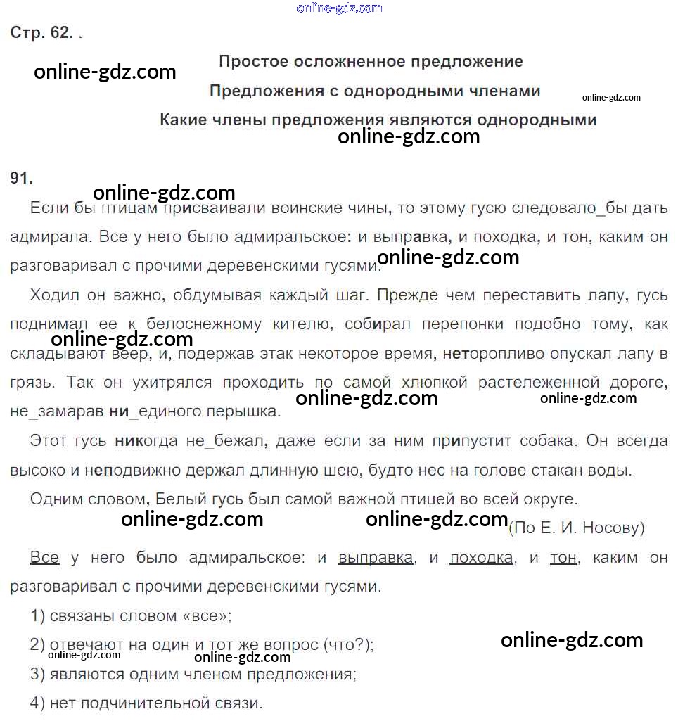 Готовые домашние задания по Русскому языку за 8 класс Рабочая тетрадь Кулаева УМК 2015 - Упражнения 91