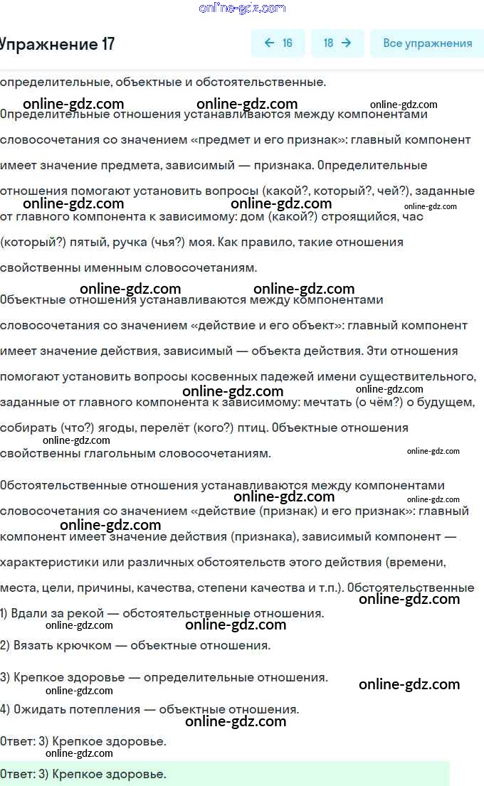 Готовые домашние задания по Русскому языку за 8 класс Тесты, творческие работы, проекты Нарушевич, Голубева 2020 - Вариант 1 Словосочетание 17