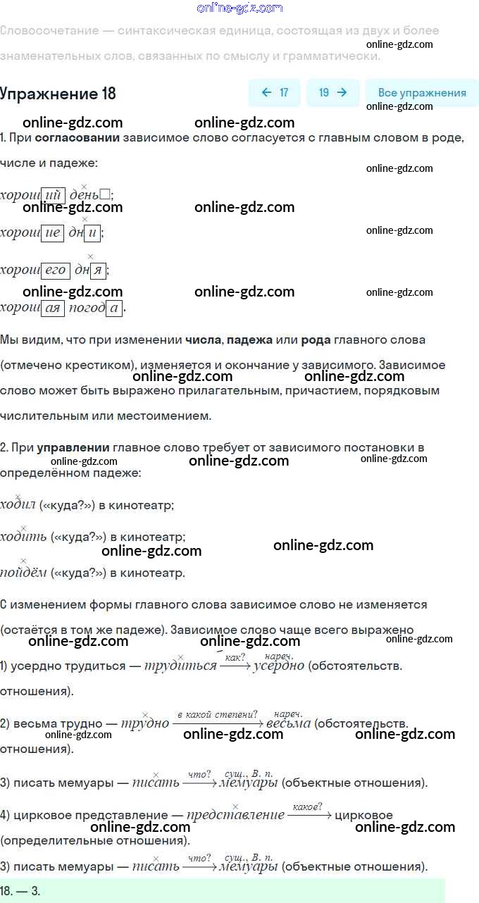 Готовые домашние задания по Русскому языку за 8 класс Тесты, творческие работы, проекты Нарушевич, Голубева 2020 - Вариант 2 Словосочетание 18