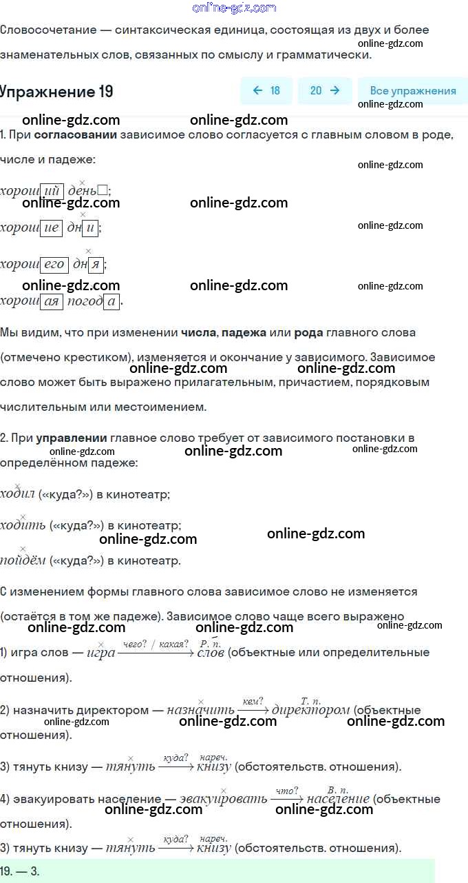 Готовые домашние задания по Русскому языку за 8 класс Тесты, творческие работы, проекты Нарушевич, Голубева 2020 - Вариант 2 Словосочетание 19