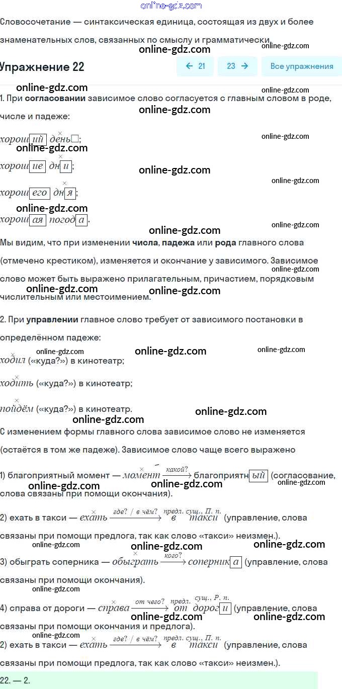 Готовые домашние задания по Русскому языку за 8 класс Тесты, творческие работы, проекты Нарушевич, Голубева 2020 - Вариант 2 Словосочетание 22