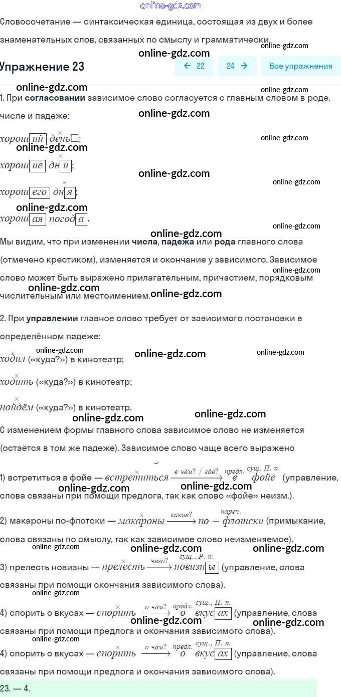 Готовые домашние задания по Русскому языку за 8 класс Тесты, творческие работы, проекты Нарушевич, Голубева 2020 - Вариант 2 Словосочетание 23