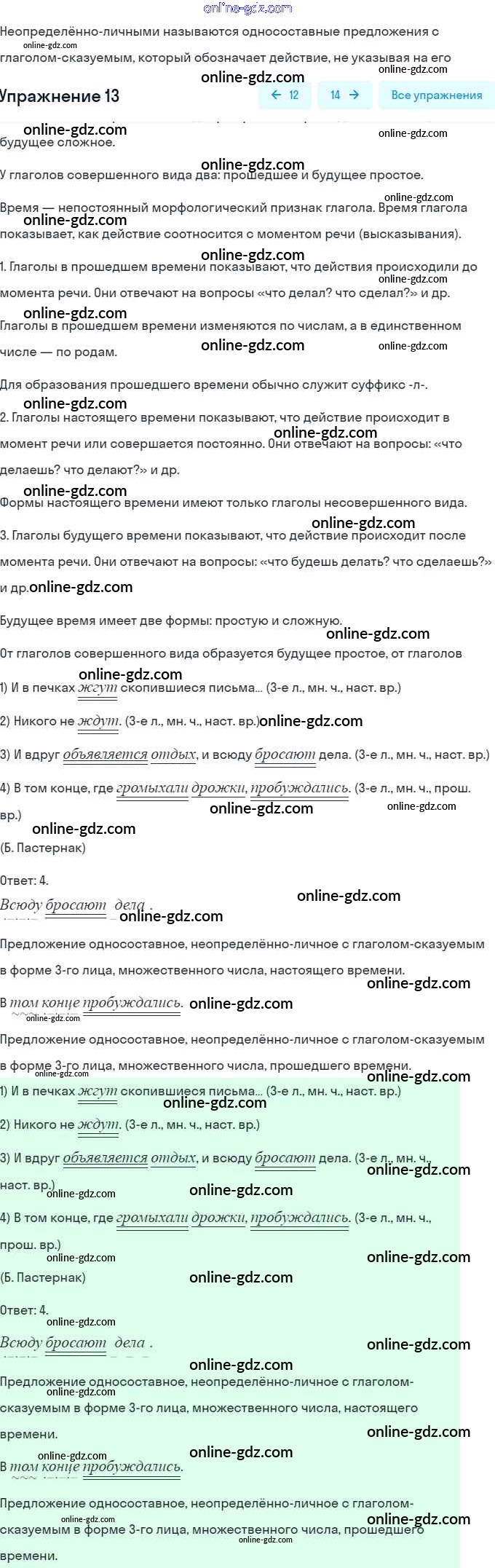 Готовые домашние задания по Русскому языку за 8 класс Тесты, творческие работы, проекты Нарушевич, Голубева 2020 - Вариант 1 Односоставные предложения. Неполные предложения 13