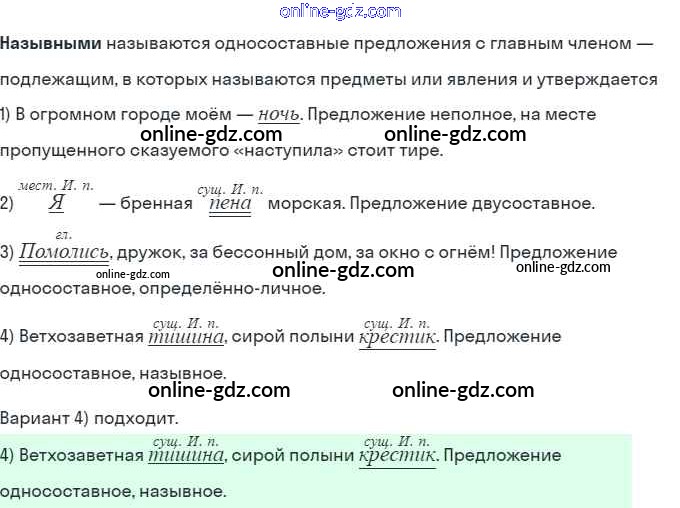 Готовые домашние задания по Русскому языку за 8 класс Тесты, творческие работы, проекты Нарушевич, Голубева 2020 - Вариант 1 Односоставные предложения. Неполные предложения 20