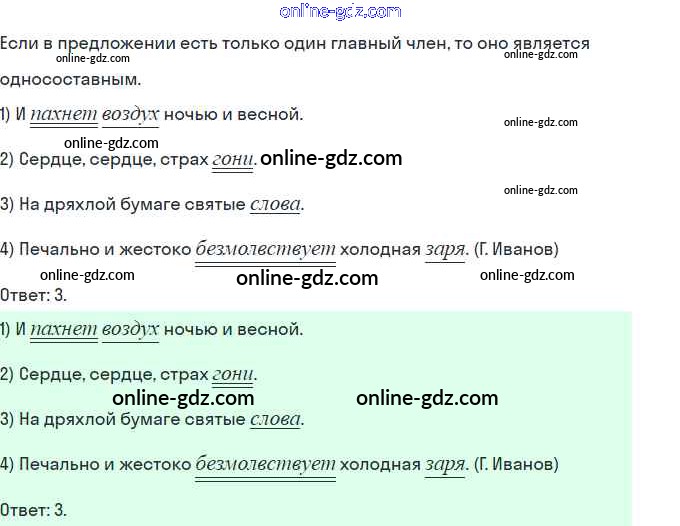 Готовые домашние задания по Русскому языку за 8 класс Тесты, творческие работы, проекты Нарушевич, Голубева 2020 - Вариант 1 Односоставные предложения. Неполные предложения 3