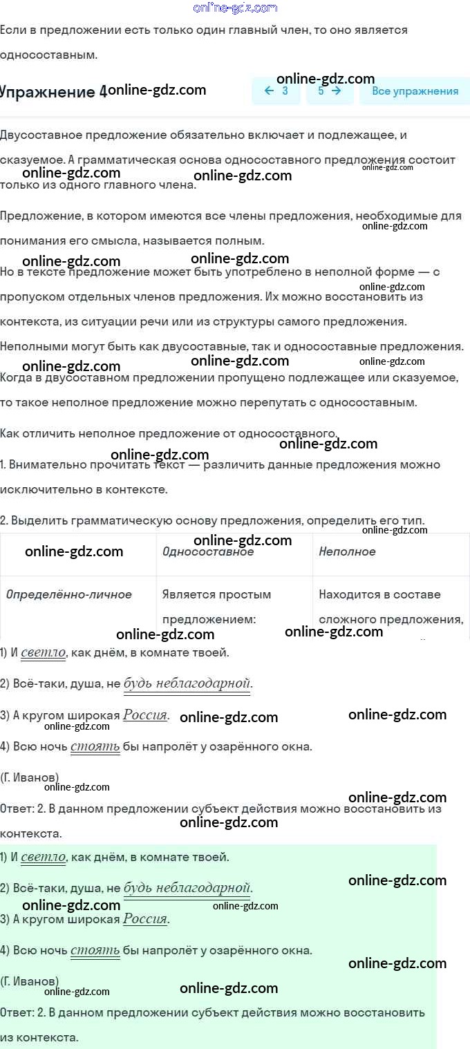 Готовые домашние задания по Русскому языку за 8 класс Тесты, творческие работы, проекты Нарушевич, Голубева 2020 - Вариант 1 Односоставные предложения. Неполные предложения 4