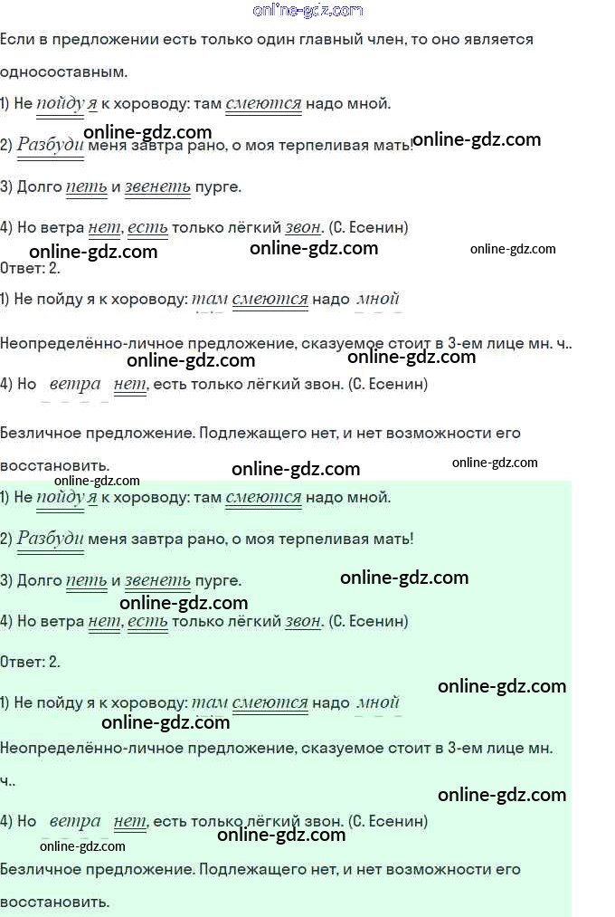 Готовые домашние задания по Русскому языку за 8 класс Тесты, творческие работы, проекты Нарушевич, Голубева 2020 - Вариант 1 Односоставные предложения. Неполные предложения 5