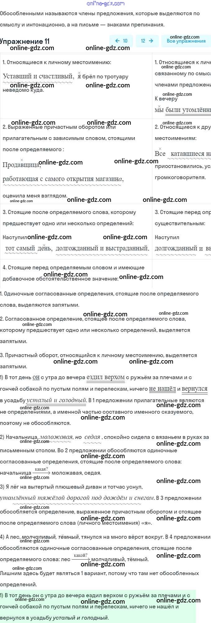 Готовые домашние задания по Русскому языку за 8 класс Тесты, творческие работы, проекты Нарушевич, Голубева 2020 - Вариант 1 Предложения с обособленными членами 11
