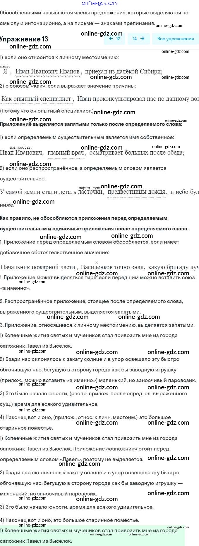 Готовые домашние задания по Русскому языку за 8 класс Тесты, творческие работы, проекты Нарушевич, Голубева 2020 - Вариант 1 Предложения с обособленными членами 13