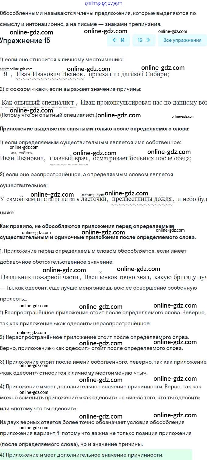 Готовые домашние задания по Русскому языку за 8 класс Тесты, творческие работы, проекты Нарушевич, Голубева 2020 - Вариант 1 Предложения с обособленными членами 15
